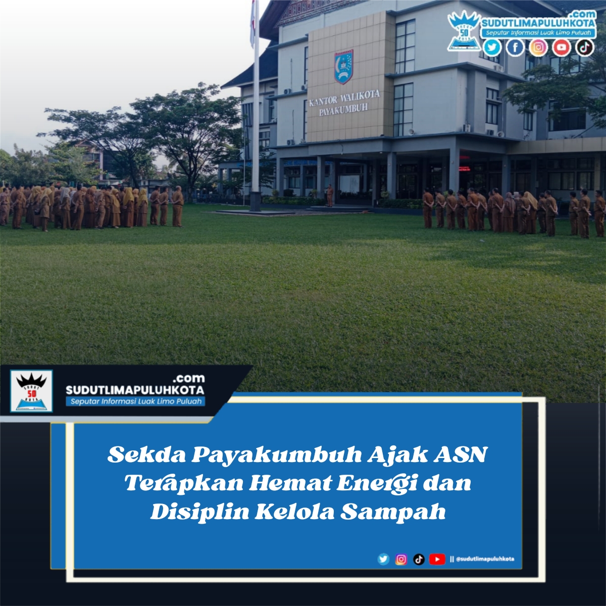 Payakumbuh, http://sudutlimapuluhkota.com — Sekretaris Daerah Kota Payakumbuh, Rida Ananda, mengajak seluruh Aparatur Sipil Negara (ASN) menerapkan pola hidup hemat energi serta disiplin dalam pengelolaan sampah. Ajakan tersebut disampaikan saat apel pagi di halaman Balai Kota Payakumbuh, pada Senin (20/04/2026).